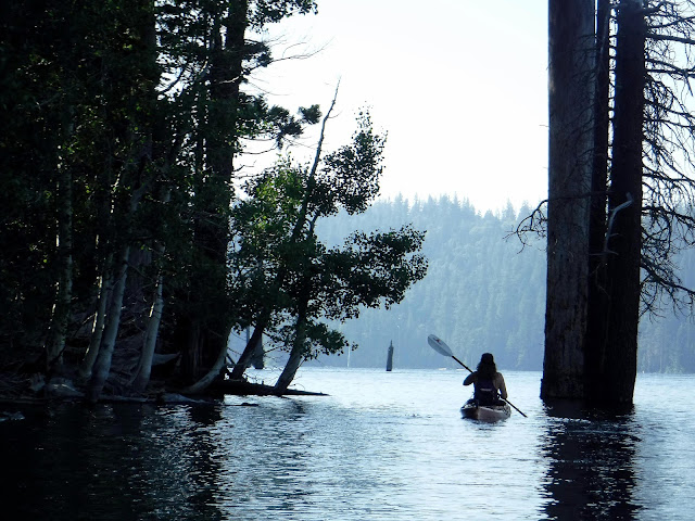 A smokey haze floated over the water and mountains at Lake Valley Reservoir. A forest fire was raging down in the hills and the smoke was blowing our way. So much so, I even questioned my decision to paddle here. The smoke fogged our view of the Sierra, burned out eyes and throat a common occurrence during California's fire season. Setting off across the lake, I just hoped the wind would change and the smoke would clear.